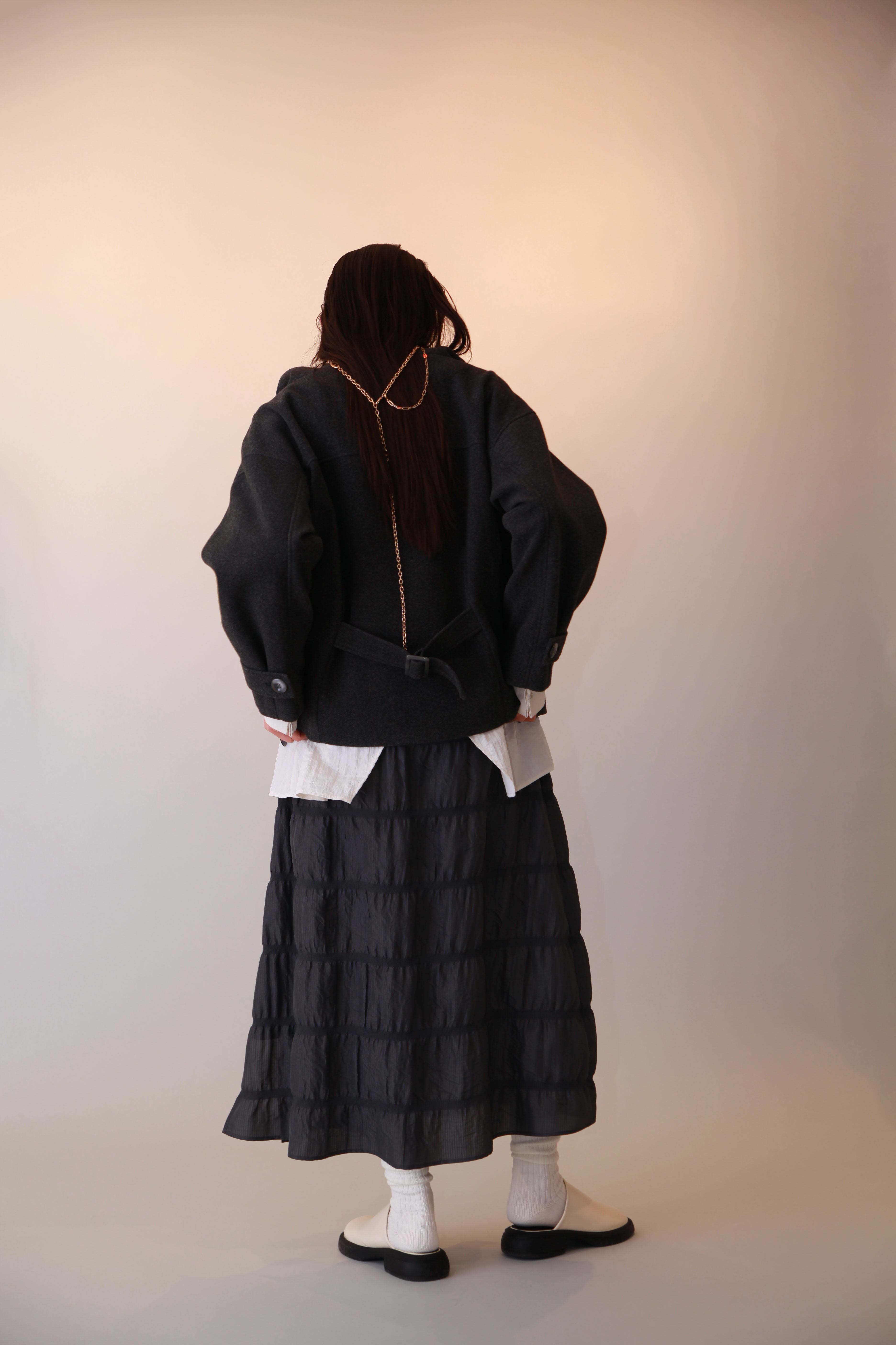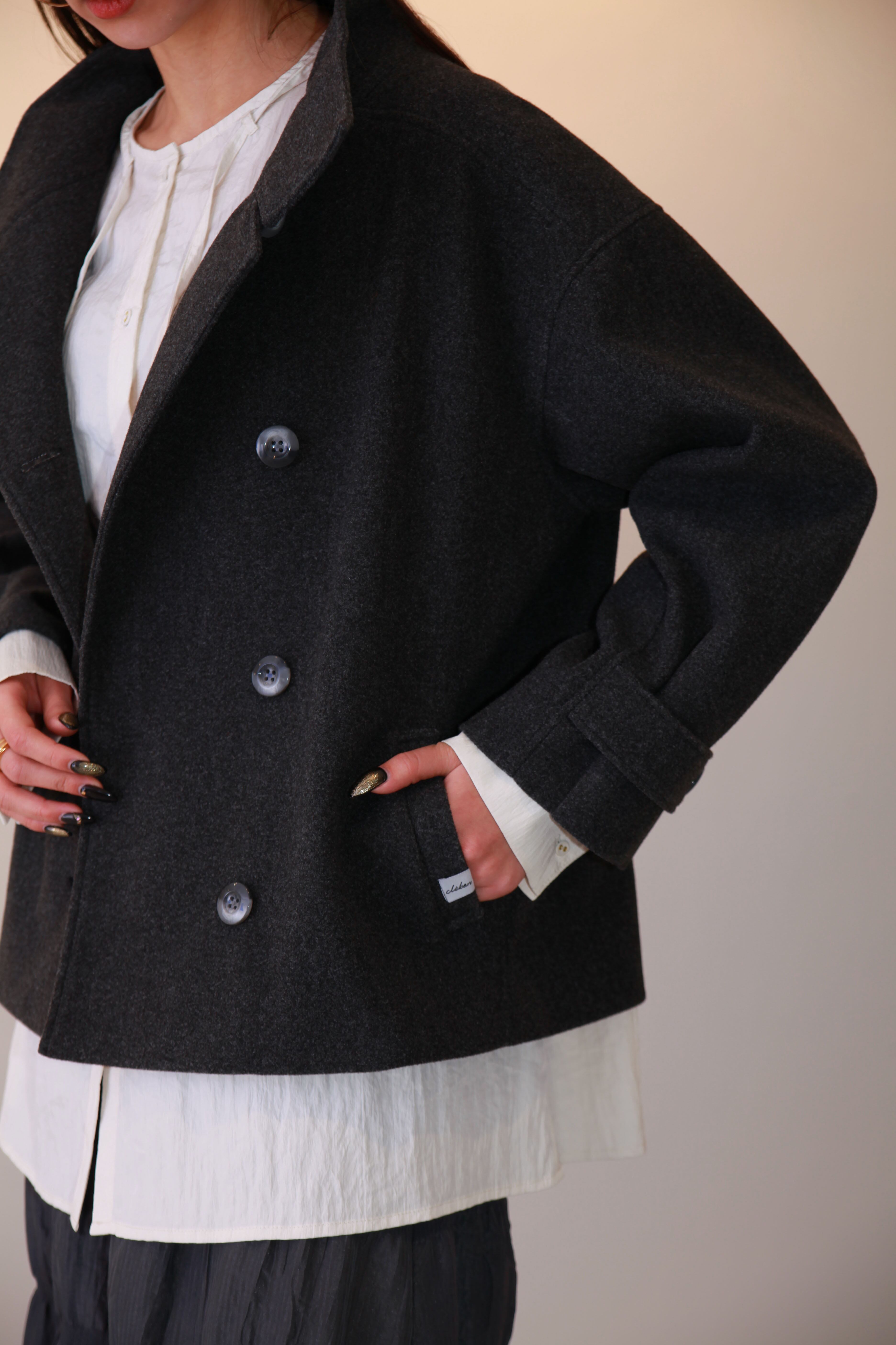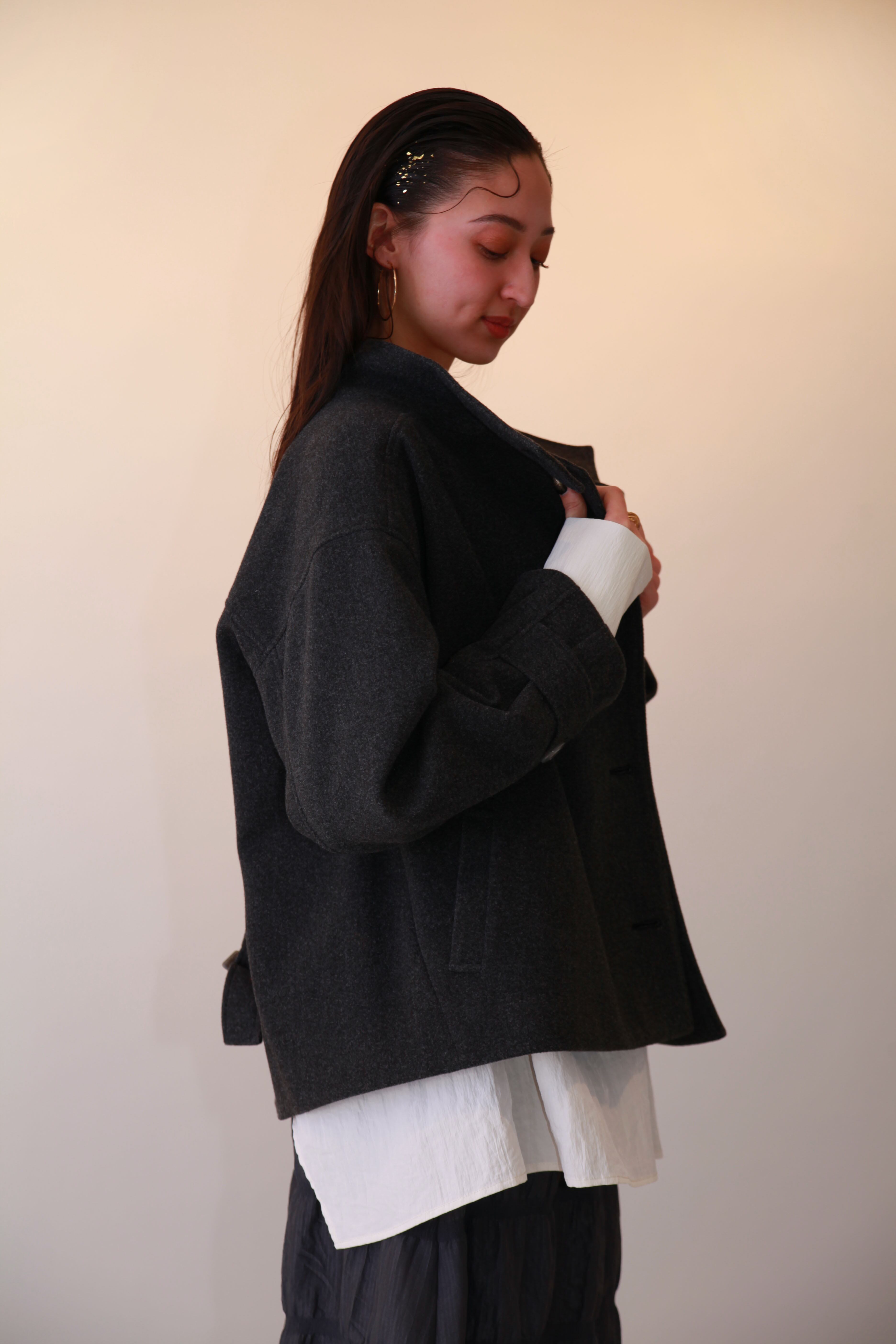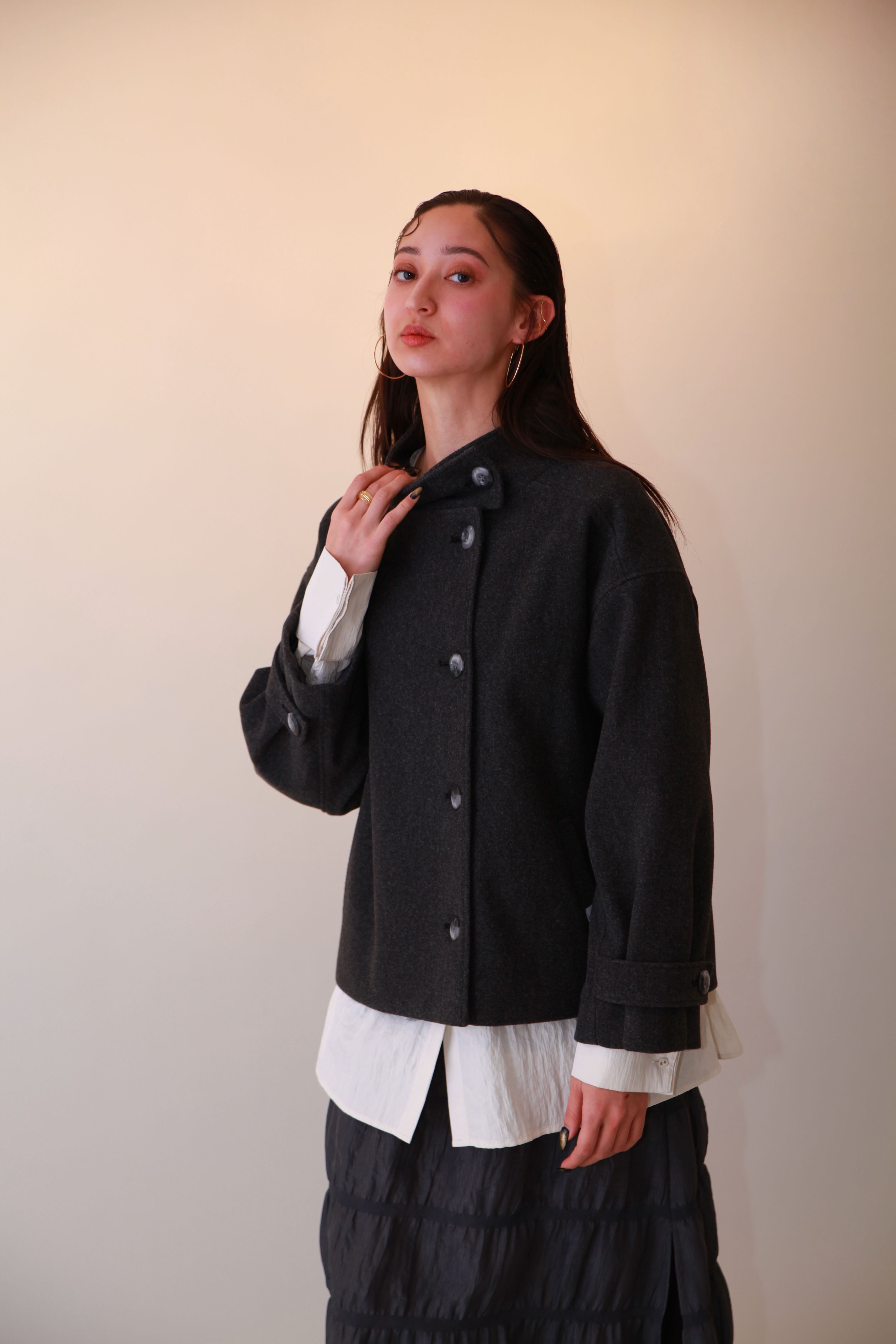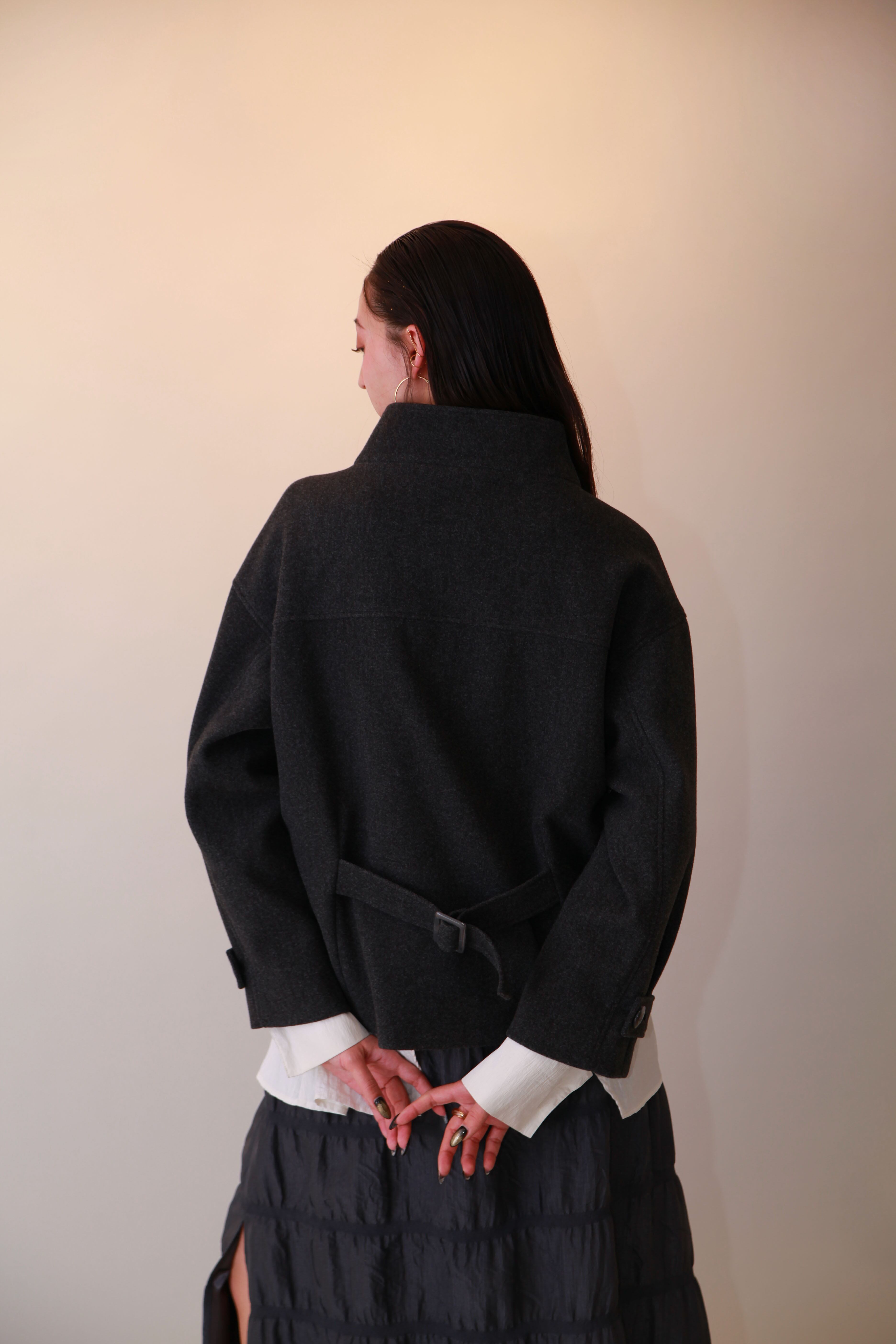 デイリー使いから特別な日まで、様々なシーンに対応するステンカラーのメルトンショートコートです。