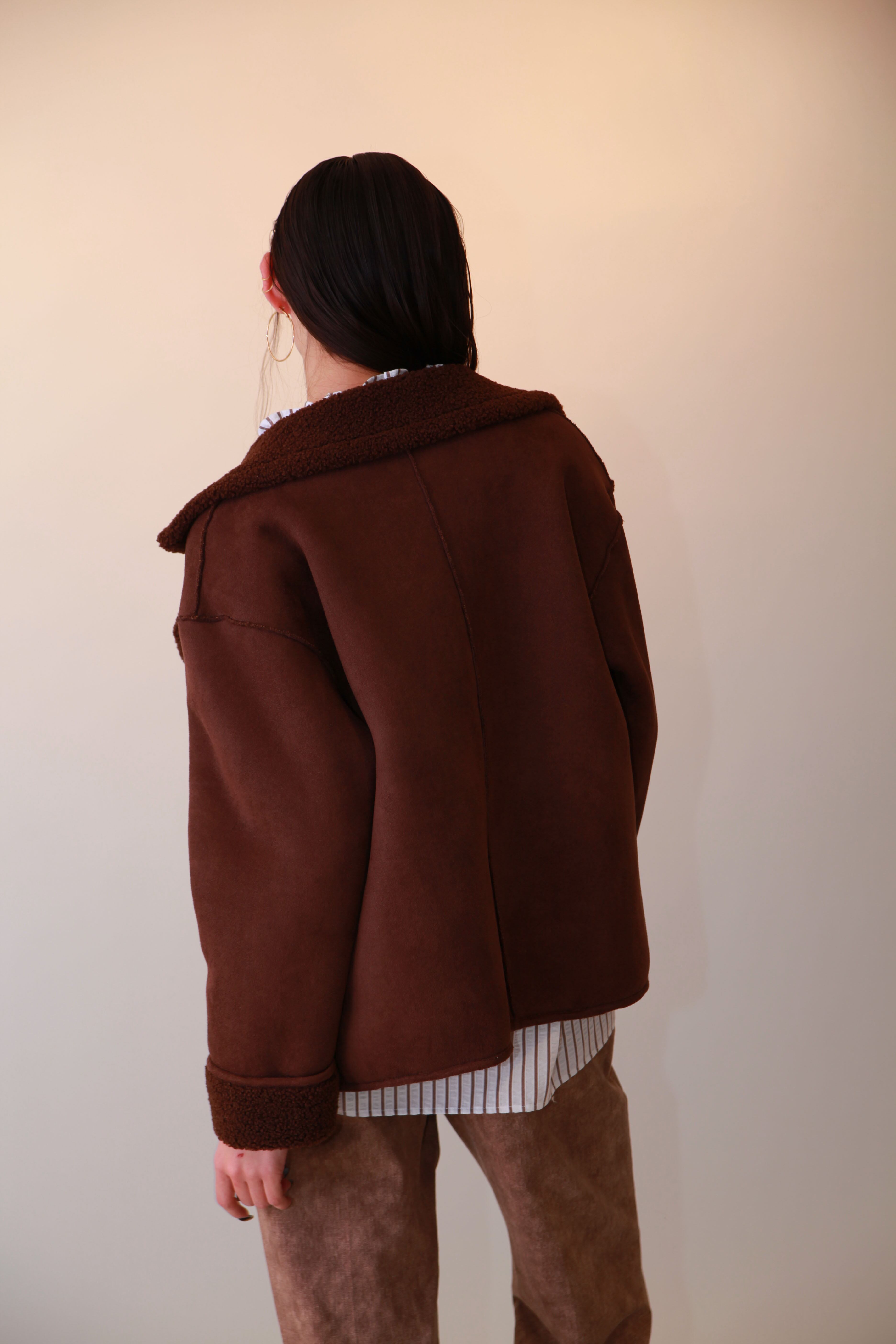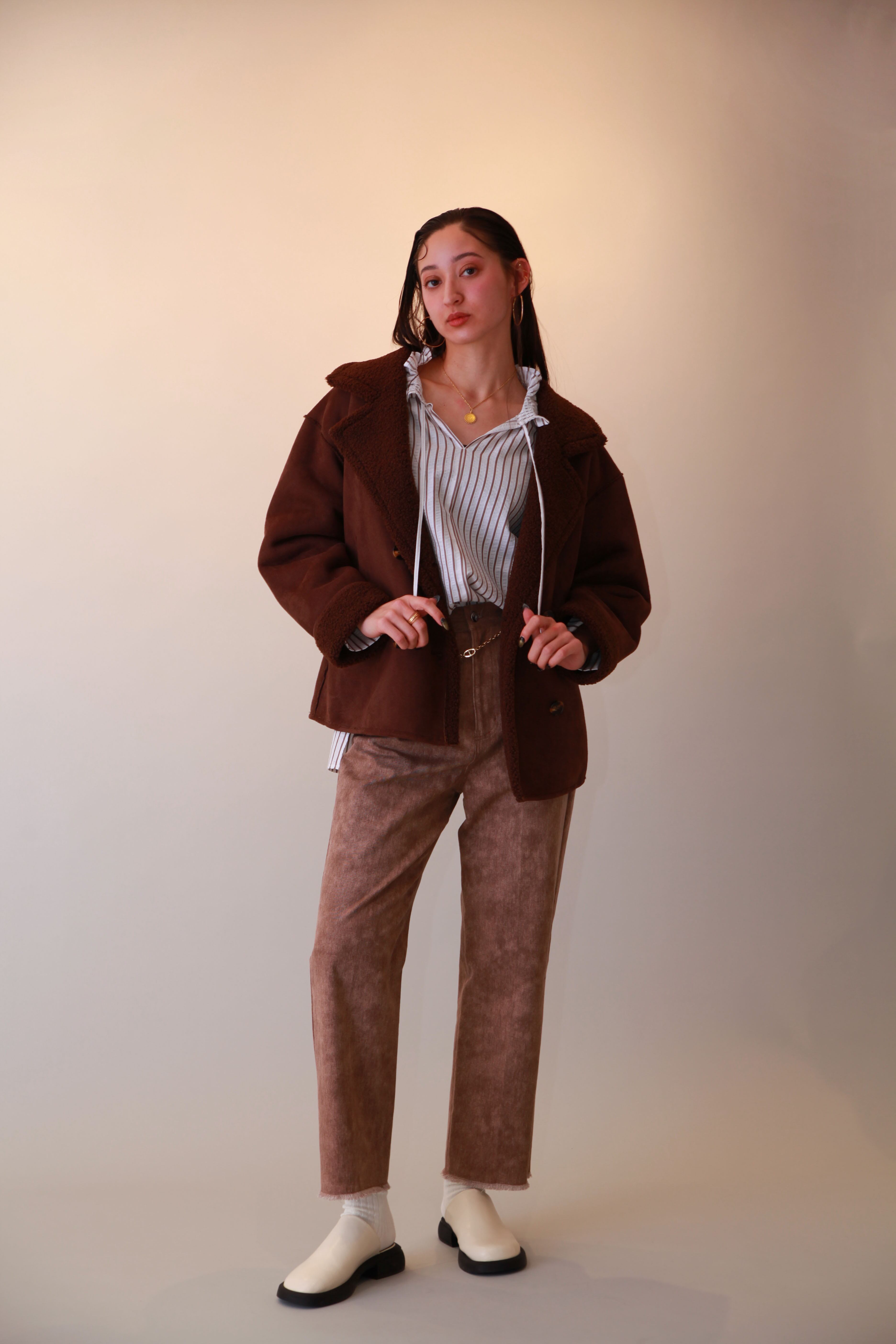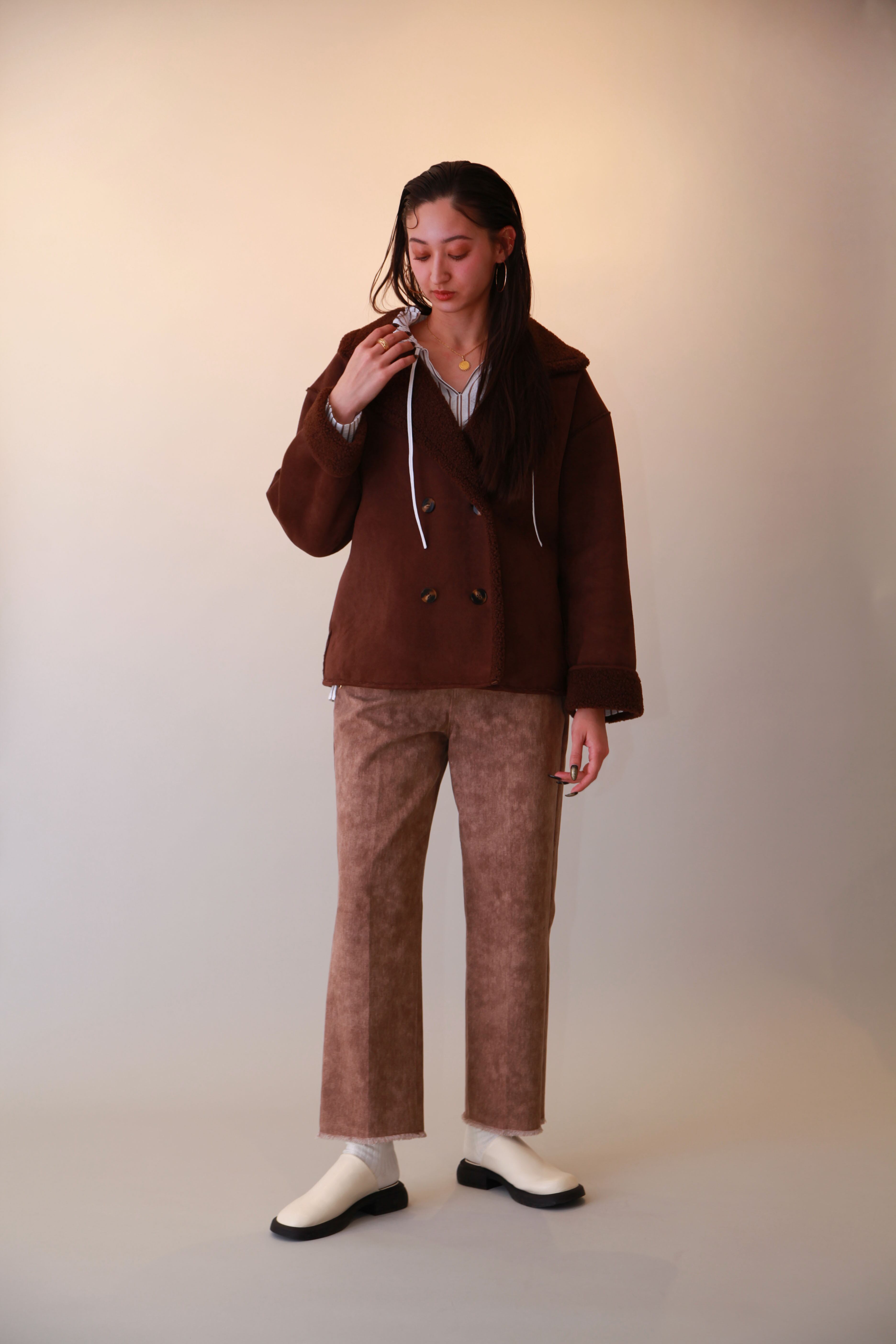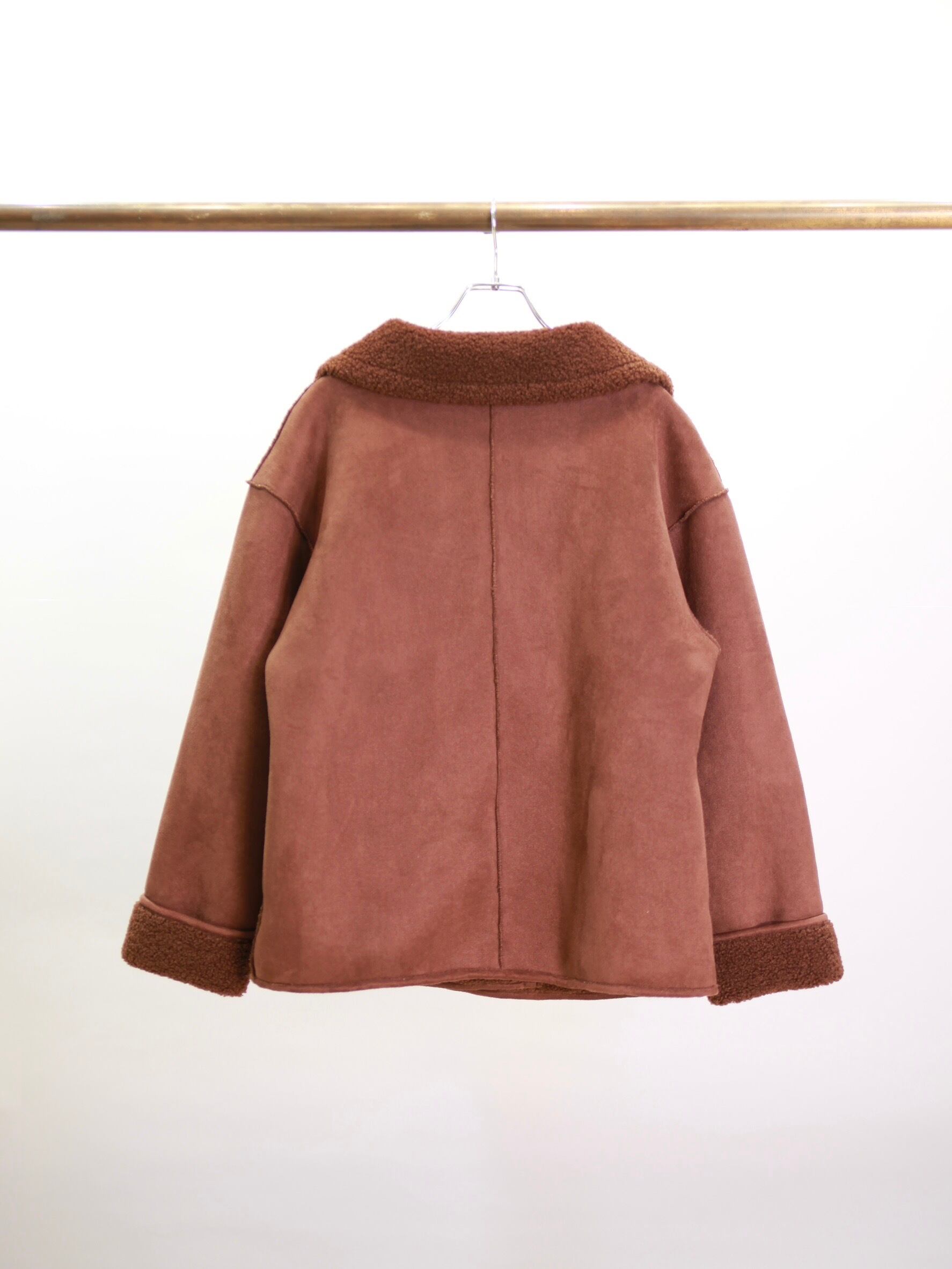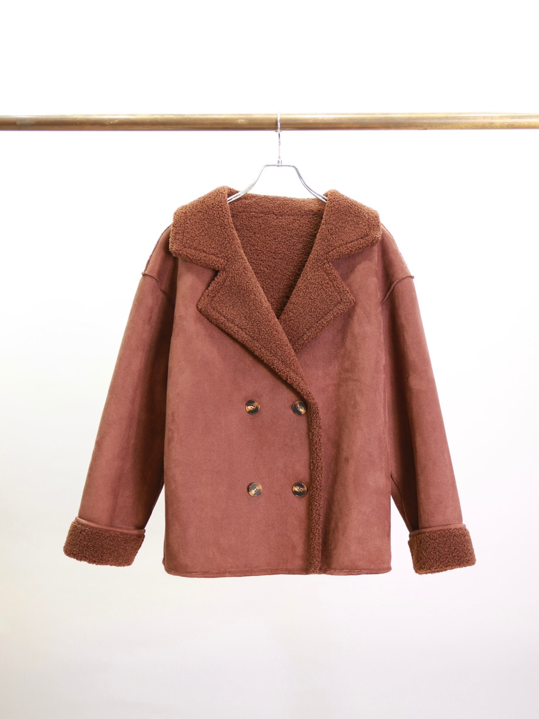 表はスエード、裏はムートンボアで保温性に優れたダブルボタンのジャケットです。